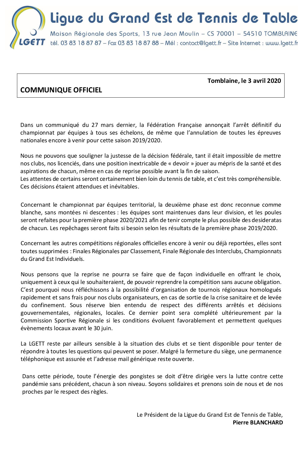 Communiqué du 3 avril