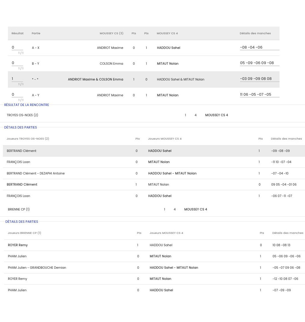 feuilles de match Ufolep