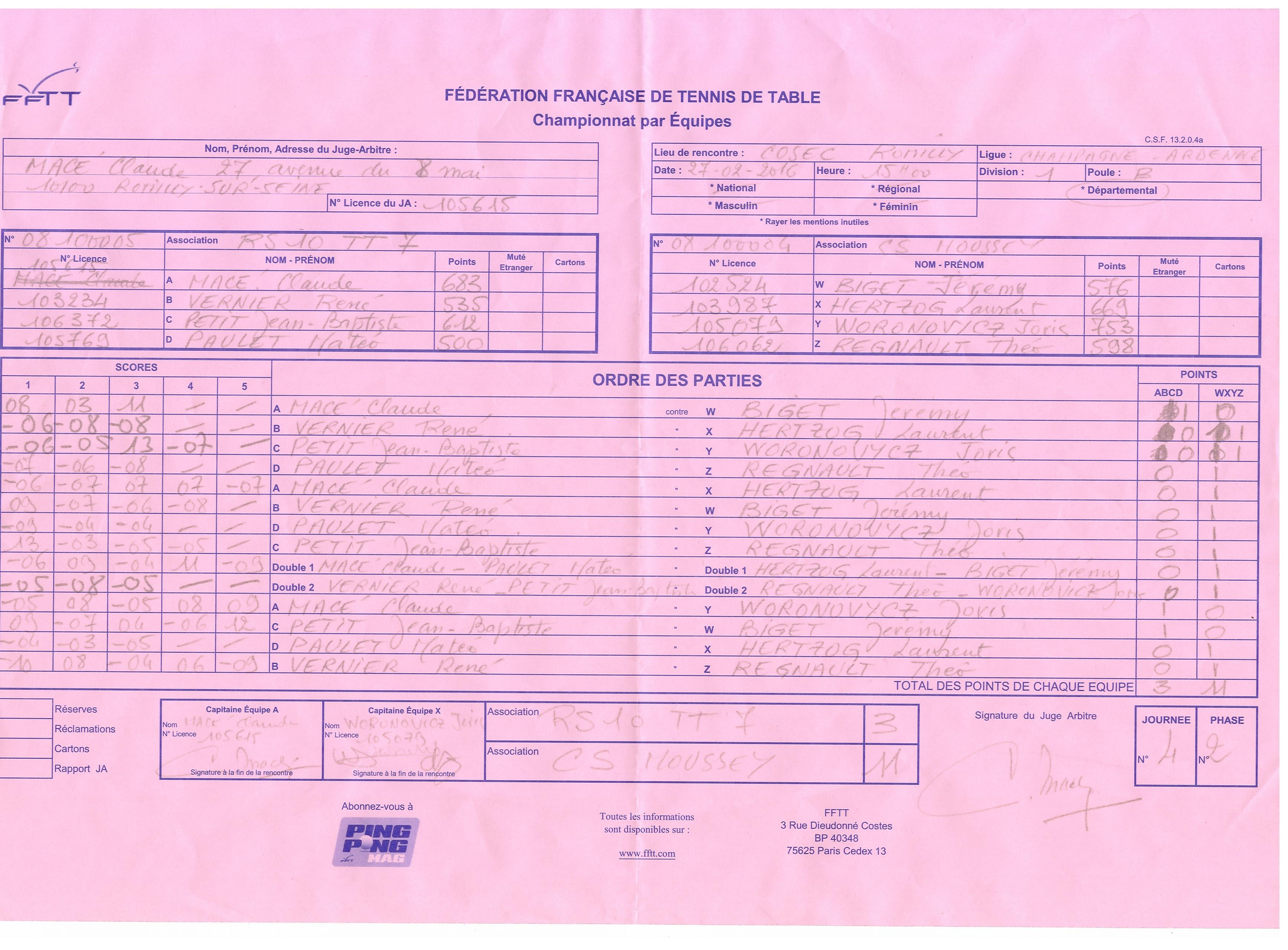 feuilles de match Ufolep