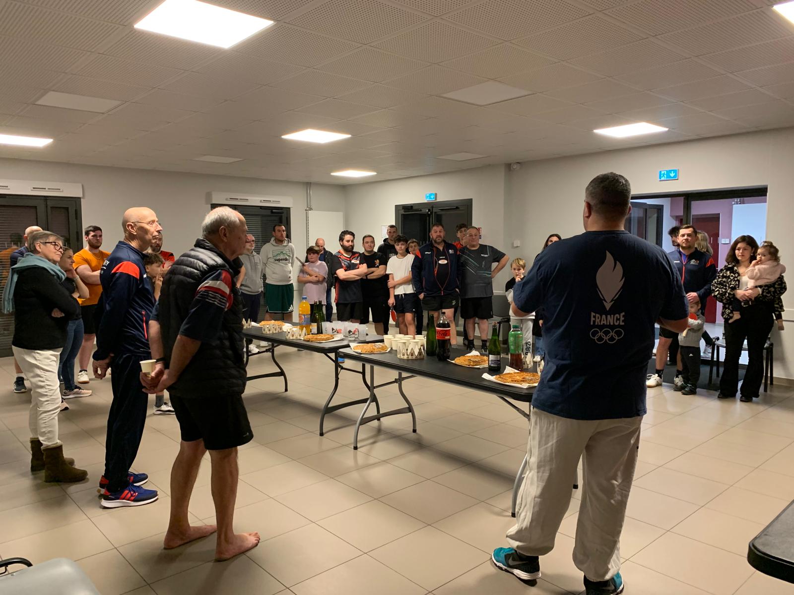 Avant de commencer le tournoi, Jérémy a accueilli les participants et informé que le club finançait 30€ au stage enfants en février qui sera animé par un entraîneur du Grand-Est. Il a remercié Pascal Sébillotte qui a apporté les galettes de sa boulangerie à Chaource.